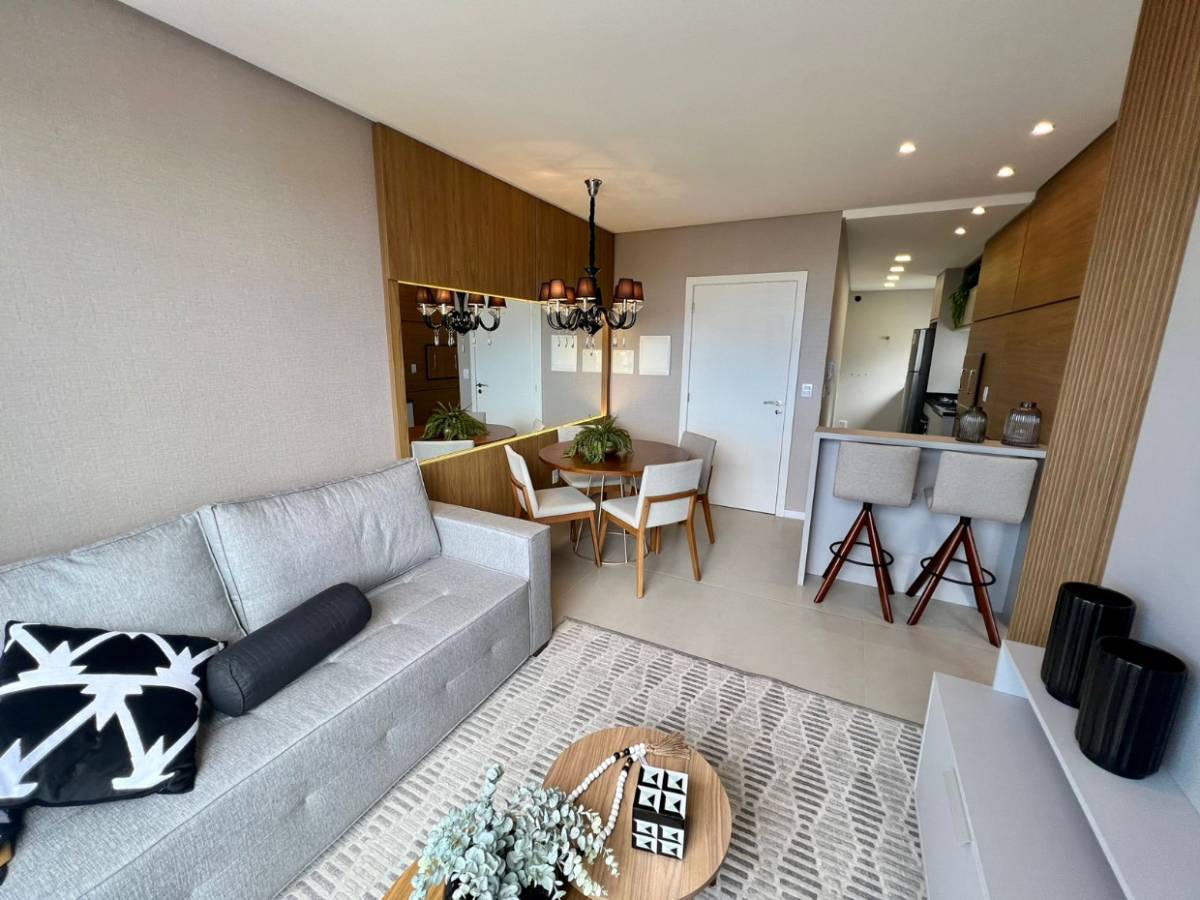 Apartamento de dois dormitórios sendo um suíte, mobiliado e decorado, leste, living em dois ambientes, sacada integrada, churrasqueira em edifício novo com infraestrutura, salão de festas, espaço kids, academia e piscina. Agende uma visita!