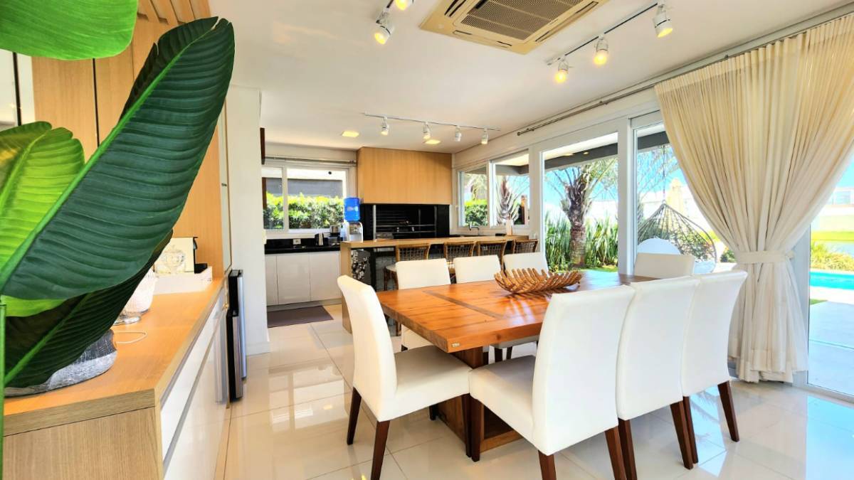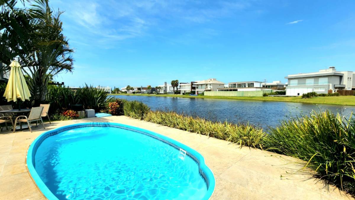 Condomínio Enseada! Em uma das melhores posições do condomínio, sobrado oferece conforto e funcionalidade, possui 1 suíte térrea e outras 3 no pavimento superior, living 2 ambientes com lareira, cozinha estilo americana, amplo pátio com piscina aquecida e uma linda vista para o lago, paisagismo e irrigação.