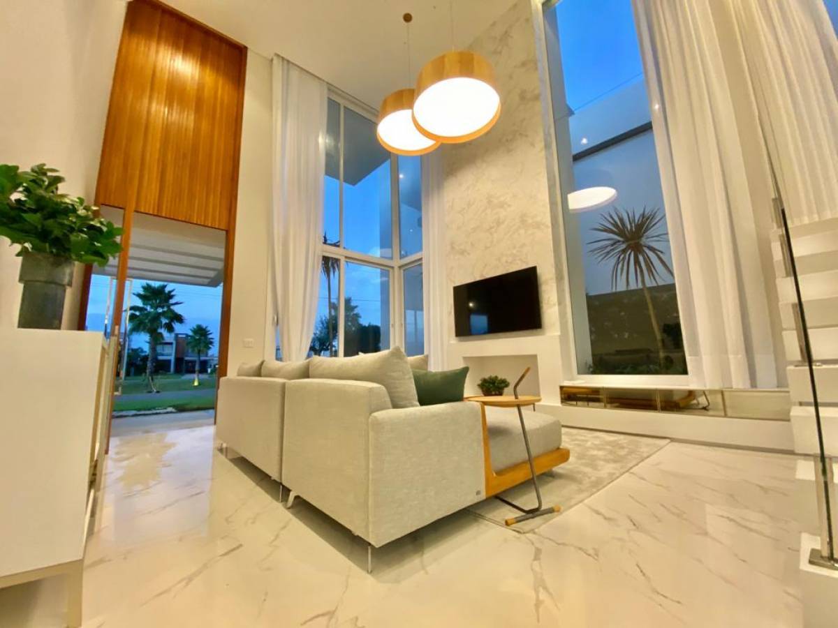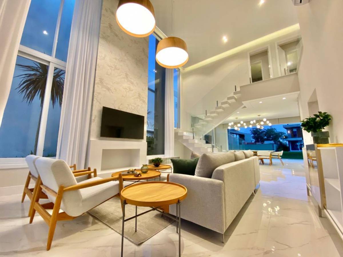 Sobrado finamente mobiliado e decorado, alto padrão, beira de lago, no Condomínio Capão Ilhas Resort em Capão da Canoa! Composto por 4 suítes (sendo 1 suíte máster com banheira de hidromassagem e closet), lavabo, amplo living em 3 ambientes com pé direito duplo, lareira, cozinha, churrasqueira, área de serviços e abrigo para 2 carros. São 270m², finamente mobiliado e decorado, alto padrão de acabamentos, piso porcelanato, rebaixado em gesso, esquadrias em PVC, ar condicionados splits em todos os cômodos, pronto para veranear/morar! Linda jardinagem com paisagismo, amplo pátio privativo com piscina de concreto. Conforto, sofisticação e segurança, em um condomínio de luxo, com fantástica infraestrutura de lazer integrada a exuberante natureza à beira da Lagoa dos Quadros em Capão da Canoa! Agende hoje mesmo sua visita!