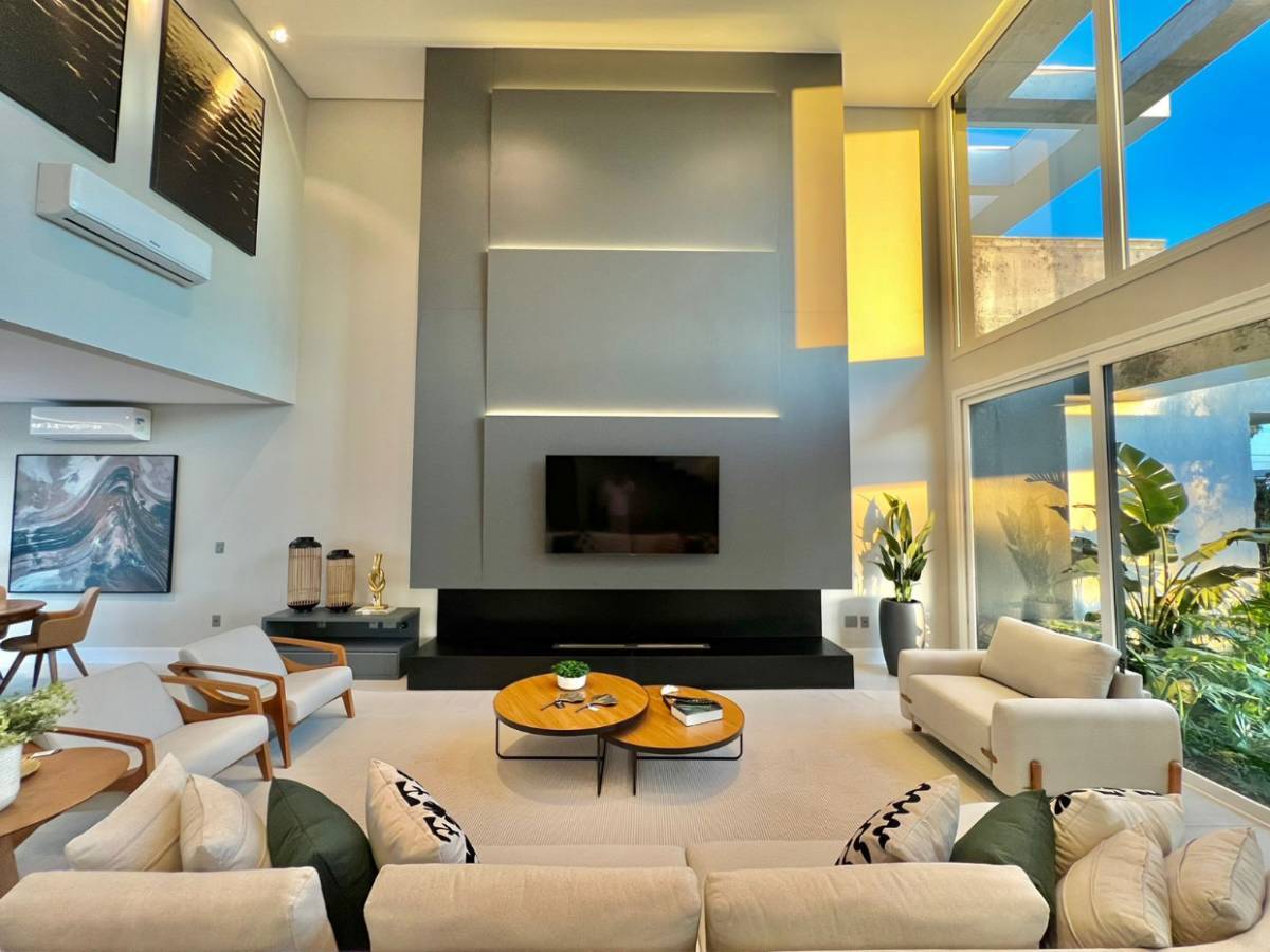 Sobrado novo, junto a infraestrutura, no Condomínio Capão Ilhas Resort em Capão da Canoa! Composto por 4 suítes, lavabo, amplo living em 3 ambientes com pé direito duplo, finamente mobiliada e decorada, lareira, cozinha americana, churrasqueira, área de serviços e abrigo para 2 carros. São aproximadamente 274m², alto padrão de acabamentos, piso porcelanato, rebaixado em gesso, esquadrias em PVC, esperas para splits em todos os cômodos, pronto para veranear/morar! Amplo pátio privativo, lindo paisagismo com irrigação, piscina de concreto. Conforto, sofisticação e segurança, em um condomínio de luxo, com fantástica infraestrutura de lazer integrada a exuberante natureza à beira da Lagoa dos Quadros em Capão da Canoa! Agende hoje mesmo sua visita!