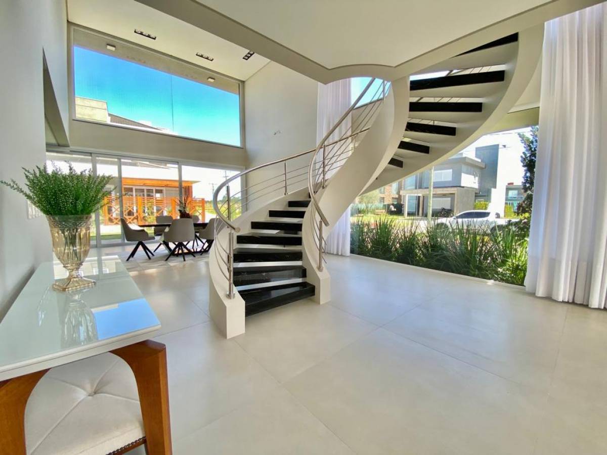 Sobrado de esquina, mobiliado e decorado, no condomínio Capão Ilhas Resort em Capão da Canoa! Composta por 4 suítes, lavabo, amplo living em 3 ambientes com pé direito duplo, lareira, cozinha americana, espaço gourmet com churrasqueira, área de serviços separada e abrigo para 2 carros. Sobrado mobiliado e decorado, alto padrão de acabamentos, piso porcelanato, esquadrias em PVC, esperas para splits, pronta para veranear/morar! Bem iluminada e com persianas automatizadas, todas aberturas já com tela anti mosquito, piso 1, 20 x 1, 20 em toda a casa, pedras diferenciadas nos banheiros. Conforto, sofisticação e segurança, em um condomínio de luxo, com fantástica infraestrutura de lazer integrada a exuberante natureza à beira da Lagoa dos Quadros em Capão da Canoa! Agende sua visita com um de nossos corretores!