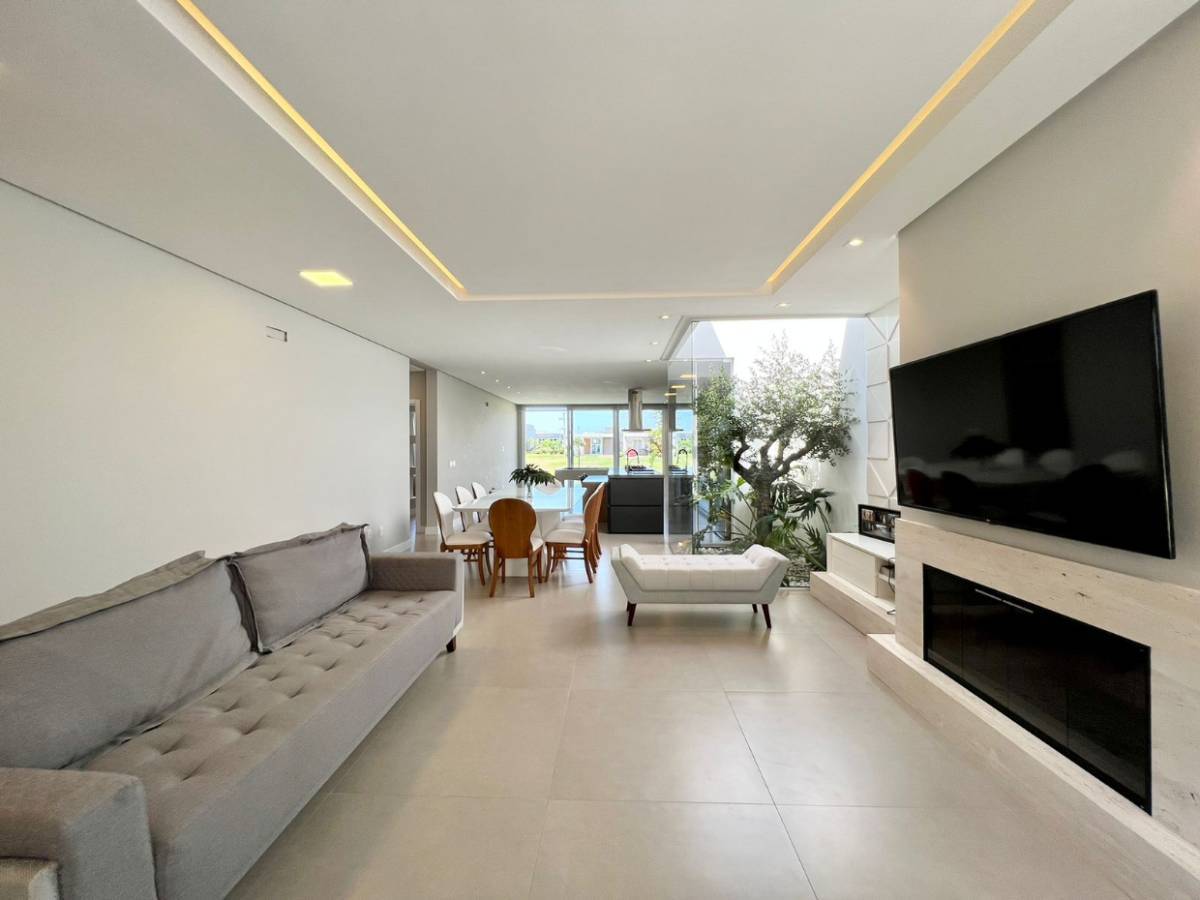 Casa térrea de alto luxo, finamente mobiliada e decorada, junto a beira da Lagoa dos Quadros, no Condomínio Capão Ilhas Resort em Capão da Canoa! Composta por 4 suítes, lavabo, amplo living em 3 ambientes com pé direito duplo, lareira, cozinha americana, espaço gourmet, churrasqueira, área de serviços, e abrigo para 2 carros. São 196m², finamente mobiliada e decorada, alto padrão de acabamentos, piso porcelanato, esquadrias em PVC, climatizada, pronta para veranear/morar, amplo pátio privativo, lindo paisagismo, jardim de inverno. Conforto, sofisticação e segurança, em um condomínio de luxo, com fantástica infraestrutura de lazer integrada a exuberante natureza à beira da Lagoa dos Quadros em Capão da Canoa! Agende sua visita hoje