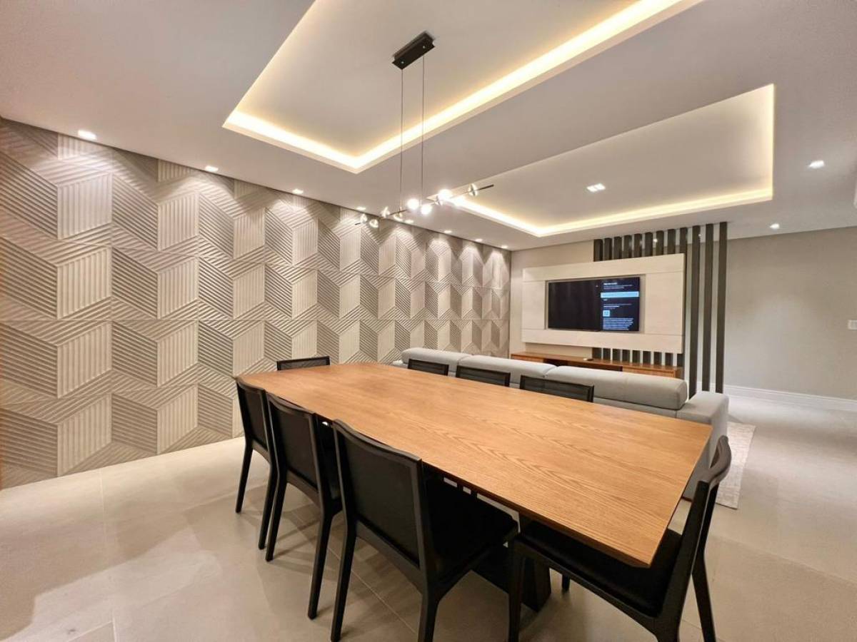 Sobrado de esquina com 4 suítes mais dependência de empregada, amplo living estar e jantar, cozinha separada, lavanderia separada, amplo salão de festas, espaço gourmet completo, ótimo espaço de pátio, piscina aquecida, toda climatizada, finamente mobiliada e decorada, garagem para 3 carros, Porte-cochère, tudo isso em dois terrenos em condomínio com infraestrutura completa e prainha. Agende uma visita agora mesmo e não perca esta oportunidade.
