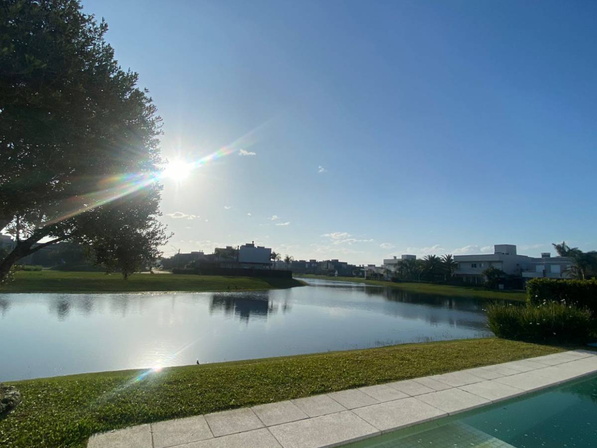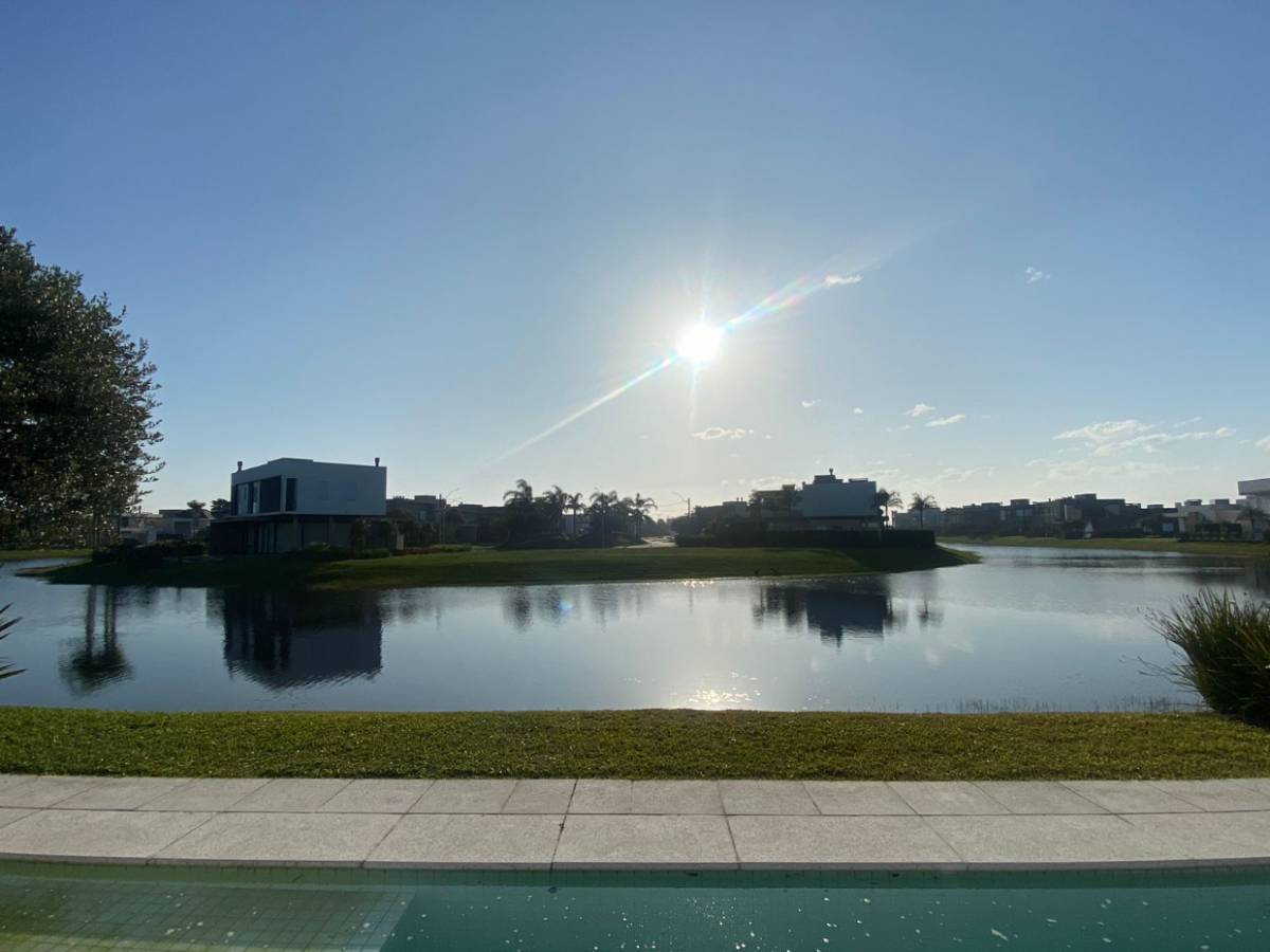 Sobrado de alto luxo, mobiliado e decorado, beira de lago, no Condomínio Fechado Enseada Lagos em Xangri-lá! Composto por 5 suítes independentes (sendo 1 suíte máster e 1 suíte térrea) + dependência de empregada, lavabo, amplo living 3 ambientes com pé direito duplo, lareira, cozinha americana com churrasqueira, área de serviços, abrigo para 2 carros. São aproximadamente 350m² de área construída, alto padrão de acabamentos, piso porcelanato, rebaixado em gesso, climatizada, pronta para morar/veranear, amplo pátio privativo com lindo paisagismo e piscina de concreto. Projeto diferenciado, valorizando a integração dos espaços sociais e de lazer. Um imóvel único, com extrema atenção aos detalhes, localização privilegiada. Super oportunidade para você desfrutar momentos inesquecíveis com sua família em um dos melhores condomínios do litoral gaúcho. Agende sua visita hoje mesmo!