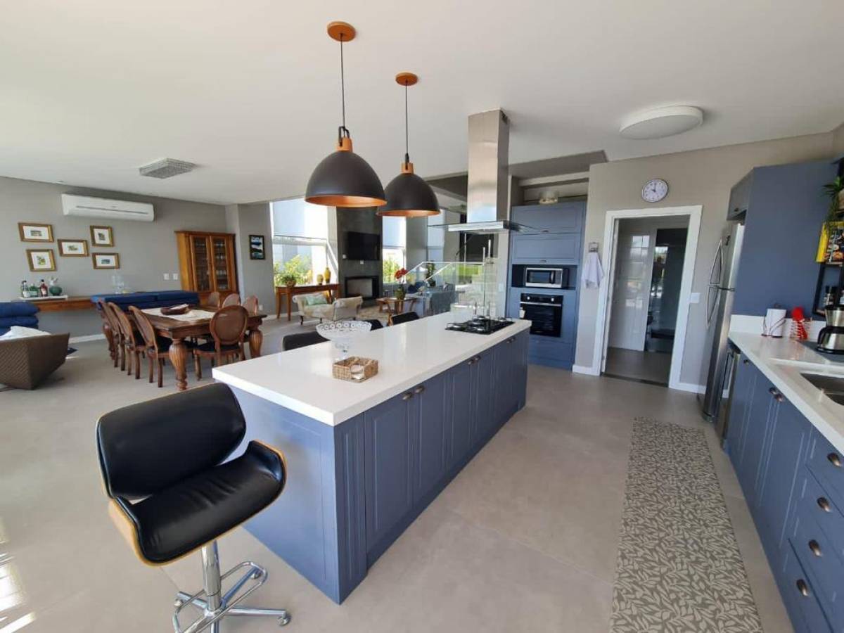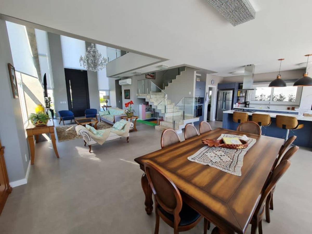 Sobrado mobiliado e decorado, beira de lago, no Condomínio Sense Xangri-lá! Residência composta por 5 suítes (sendo 1 suíte máster, 1 suíte térrea) + dependência completa de empregada, lavabo, amplo living em 3 ambientes com pé direito duplo, lareira, cozinha americana, espaço gourmet com churrasqueira, área de serviços e abrigo para 2 veículos. São 390, 00m², já mobiliada e decorada, alto padrão de acabamentos, piso porcelanato, rebaixada em gesso, esquadrias em PVC, persianas e cortinas automatizadas, climatizada, pronta para você veranear/morar! Amplo pátio privativo, piscina de concreto com aquecimento solar. Luxo e sofisticação, com toda segurança e infraestrutura de um dos melhores condomínios fechados do litoral gaúcho. Agende sua visita hoje mesmo!