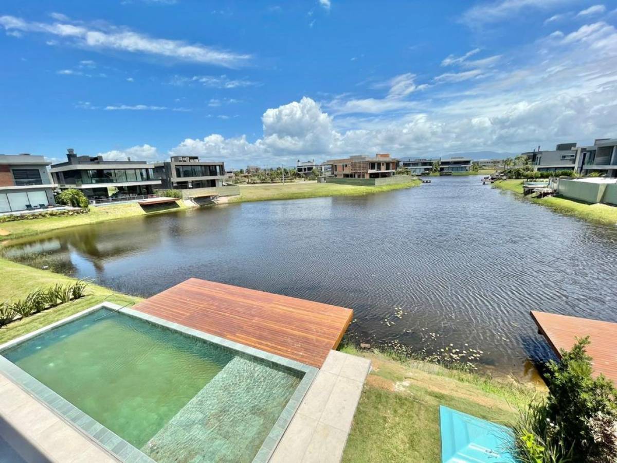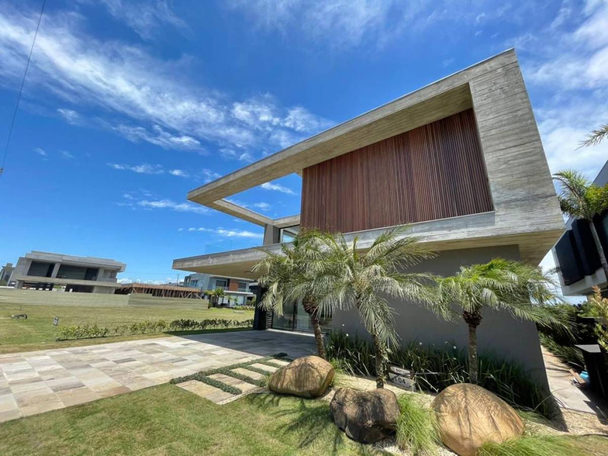 Sobrado de alto luxo, mobiliado e decorado, junto a infraestrutura, no Condomínio Sense Xangri-lá! Composto por 5 suítes (sendo 1 suíte térrea e 1 suíte máster) + dependência de empregada, lavabo, amplo living em 3 ambientes com pé direito duplo, lareira, cozinha americana, espaço gourmet com churrasqueira, área de serviços, estar intimo, banho externo e abrigo para até 2 veículos. São aproximadamente 424m² de área privativa, mobiliada e decorada, alto padrão de acabamentos, piso porcelanato, esquadrias externas em PVC (preto), climatizada, pronta para você veranear/morar! Fachada moderna, amplo pátio privativo, lindo paisagismo, piscina de concreto e deck de madeira a beira do lago. Luxo e sofisticação, com toda segurança e infraestrutura de um dos melhores condomínios fechados do litoral gaúcho. Agende sua visita hoje mesmo!