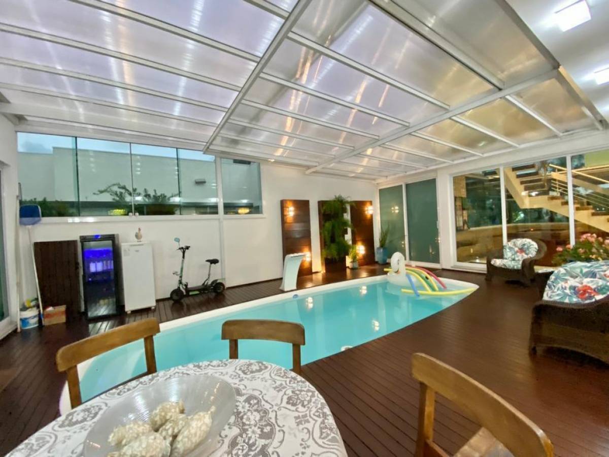 Sobrado finamente mobiliado e decorado, de frente para o lago, no condomínio Condado de Capão em Capão da Canoa! Composto de 5 suítes (sendo 1 suíte térrea e 1 suíte máster com closet), lavabo, amplo living 3 ambientes, lareira, cozinha americana com espaço gourmet e churrasqueira, área de serviços, abrigo para 2 carros. São aproximadamente 279m², alto padrão de acabamentos, piso porcelanato, rebaixada em gesso, ar condicionados splits já instalados, pronta para veranear/morar, piscina aquecida com cobertura retrátil, lindo paisagismo. Tudo isso na melhor localização do condomínio, de frente para o lago. Agende agora mesmo sua visita a essa maravilhosa residência no melhor condomínio de Capão da Canoa!
